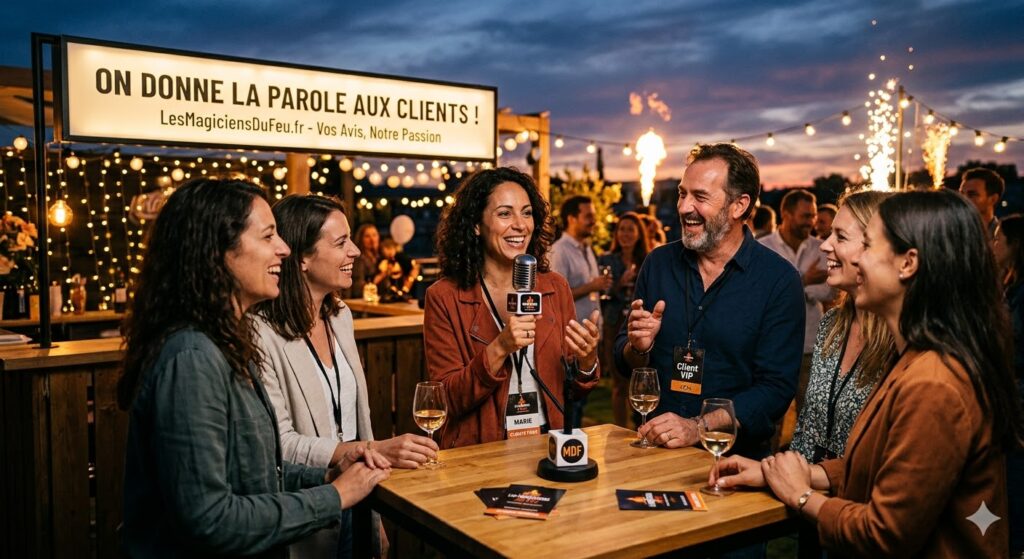 Plus besoin de présenter les Magiciens Du Feu, référence dans la vente de feu d’artifice en France, nous vous faisons part d’un nouveau format d’article. « On donne la parole à nos clients « , découvrez l’expérience inédite de nos clients et comment nos produits ont illuminer leur événement.