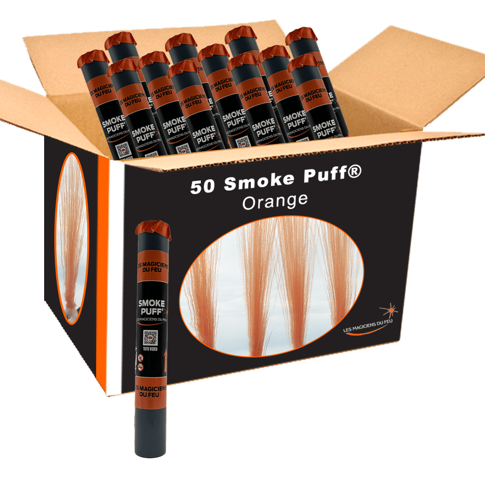 Avec ce carton de 50 « PRO F3 » Smoke Puff®, tirez cet artifice de jour soit en 1 fois pour avoir un gigantesque tableau de fumée monochrome comme on a pu le voir lors de la cérémonie des Jeux Olympiques de Paris 2024, ou alors utilisez-les à l’unité lors de multiples événements.