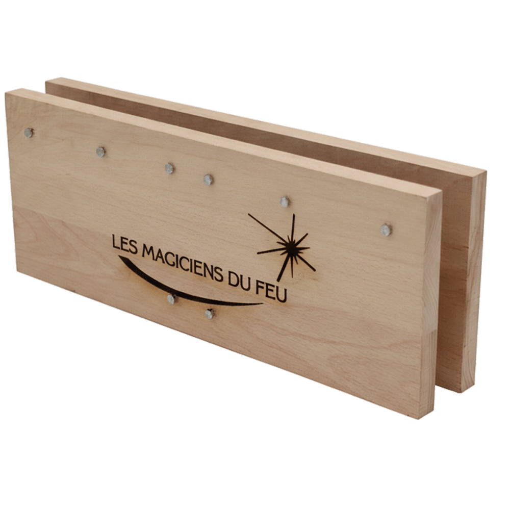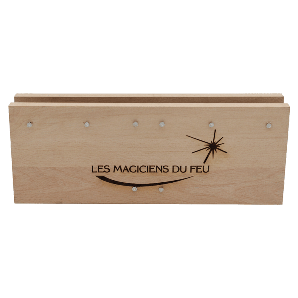 En bois (en fonction des séries il peut être en mdf, sapin, bouleau, collage de différents bois également), il est aussi esthétique que solide et vous permettra de l’utiliser pendant des années pour d’autres occasions : feu de jour pour un mariage, un anniversaire, un barbecue, une Gender Reveal Party, Baby Shower, conte de noël ou encore spectacle de rue.